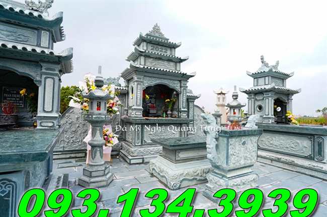 Lăng mộ đá xanh mỹ nghệ được chế tác từ đá xanh là mẫu kiến trúc phổ biến nhất trên thị trường hiện nay. Lăng mộ đá xanh được chia làm hai loại đó là lăng mộ đá xanh đen. Và lăng mộ đá xanh rêu.