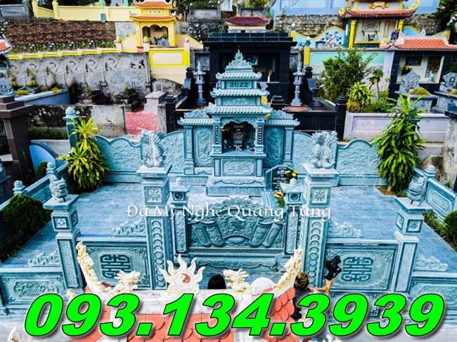 Lăng mộ đá xanh mỹ nghệ được chế tác từ đá xanh là mẫu kiến trúc phổ biến nhất trên thị trường hiện nay. Lăng mộ đá xanh được chia làm hai loại đó là lăng mộ đá xanh đen. Và lăng mộ đá xanh rêu.