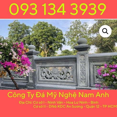 Cơ sở Đá Mỹ Nghệ Nam Anh là đơn vị hàng đầu trong lĩnh vực thi công. tư vấn tâm linh và thiết kế các công trình đá mỹ nghệ. Với hơn 15 năm kinh nghiệm, chúng tôi cam kết mang đến cho khách hàng những sản phẩm chất lượng. bền đẹp và có giá trị thẩm mỹ cao. Ngoài sản xuất và chế tác hàng rào đá. chúng tôi còn cung cấp các sản phẩm và công trình tâm linh khác như cổng đá. cột đồng trụ đá, chiếu rồng đá, lăng mộ đá, mộ đá, miếu thờ đá. nhà mồ bằng đá đẹp, cuốn thư đá, và kiến trúc đá đình chùa.