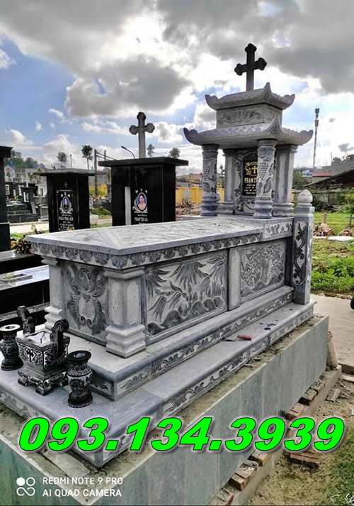 lắp đặt 33 lăng mộ công giáo đá đẹp bán tại tiền giang. Lăng mộ đá công giáo hay lăng mộ đạo thiên chúa. Là hạng mục công trình tâm linh bằng đá đặc biệt. Là nơi an nghỉ là nhà của những người đã mất theo đạo Thiên Chúa Giáo. Lăng mộ công giáo có mang một nét đặc trưng thể hiện lòng tin, tín ngưỡng đối với Đức Chúa. Các hoa văn, họa tiết được chạm khắc trên mộ mang những ý nghĩa riêng biệt so với những loại lăng mộ đá khác. Công trình được các nghệ nhân điêu khắc lành nghề, từ làng nghề đá Ninh Vân , Hoa Lư , Ninh Bình. Qua bài viết dưới đây. Đá mỹ nghệ Nam Anh hân hạnh giới thiệu đến Quý khách hàng chi tiết đặc điểm. Và những mẫu lăng mộ bán chạy nhất trên thị trường hiện nay